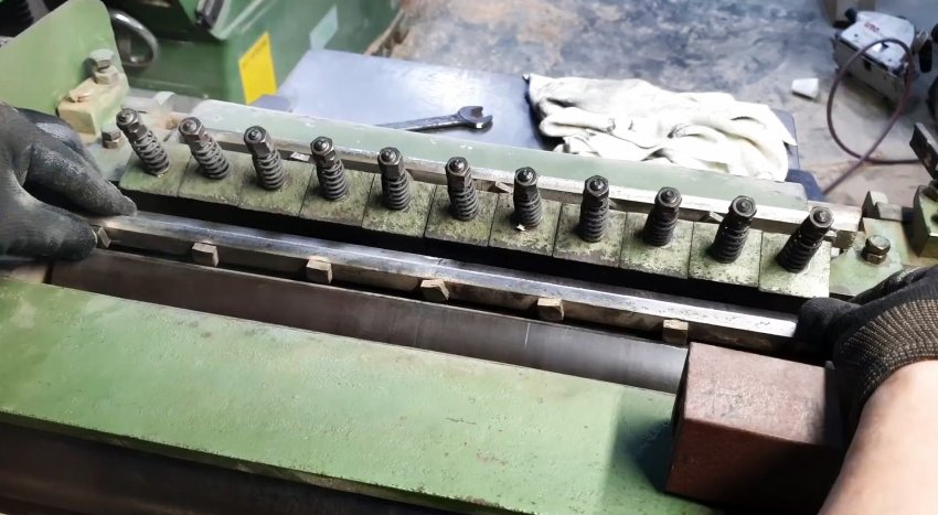 Устанавливаем ножи на место, не забыв подложить под них пружинящие пластины. Для точности установки используем магнитные приспособления с соответствующей настройкой.