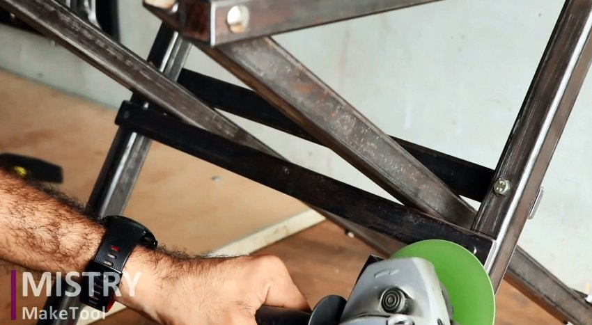 Спереди сидения по горизонтали его силовых элементов намечаем линии реза выступающих углов задних ножек и удаляем их болгаркой по разметке.