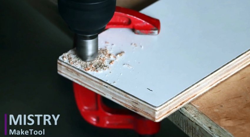 По уже готовым в профильных заготовках отверстиям сверлим отверстия и во внутренних заглушках из дерева.
