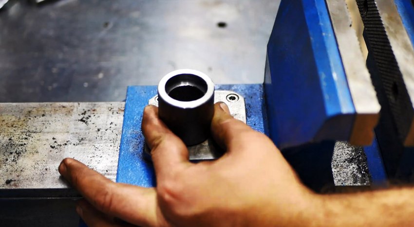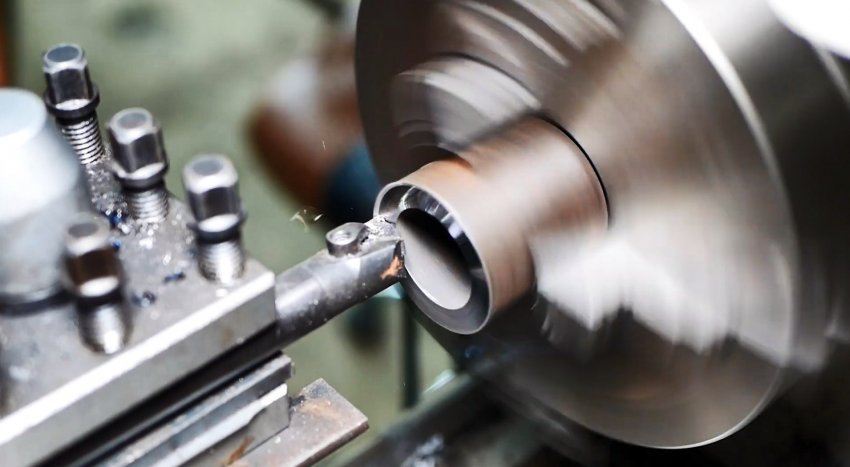 В стальной втулке на токарном станке протачиваем с двух сторон посадочные места для подшипников и впрессовываем их туда.