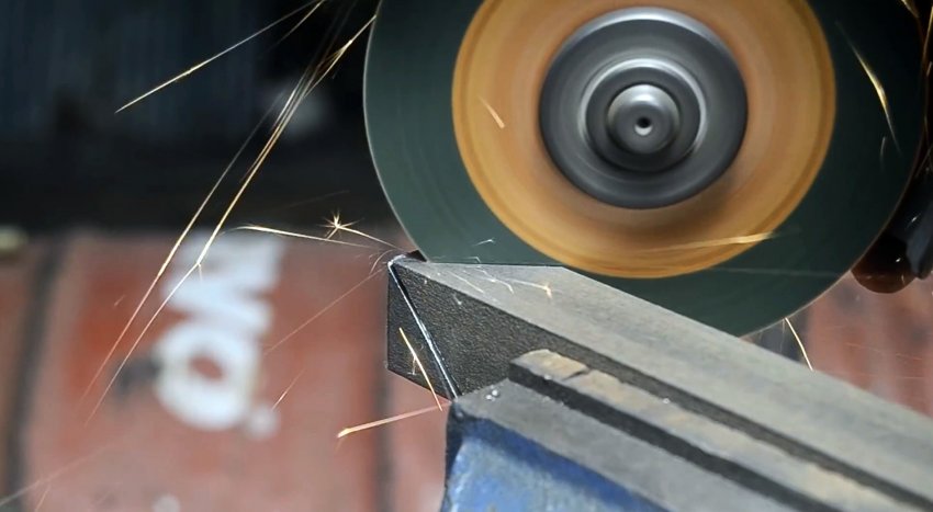 Три уголка обрезаются УШМ, места соединения обрабатывается напильником.