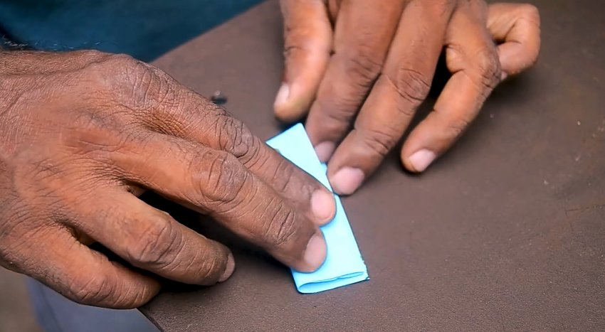 Бумажка разворачивается, на ней отмечаются места изгибов.