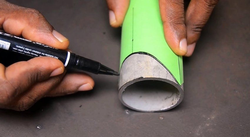 Каждая из четырёх труб оборачивается листиком, на них переносится разметка.