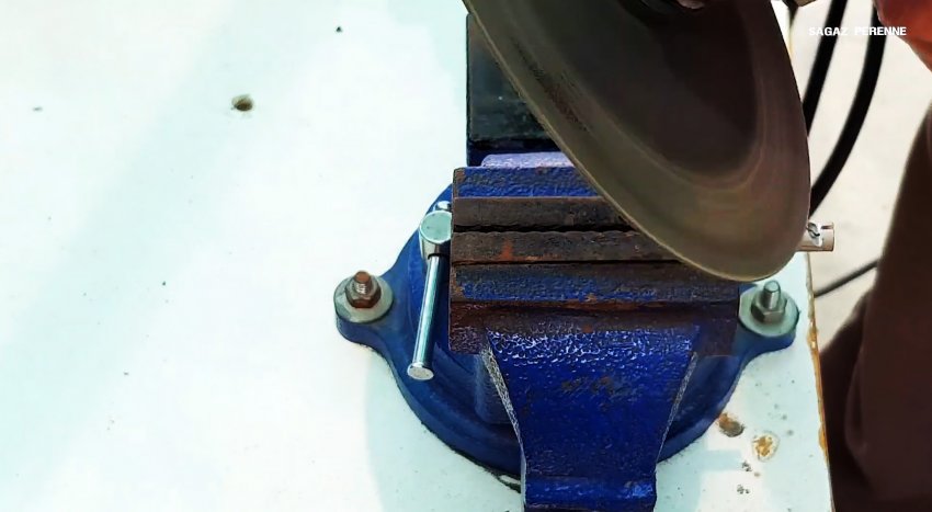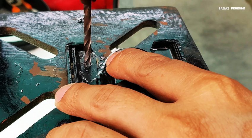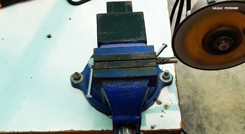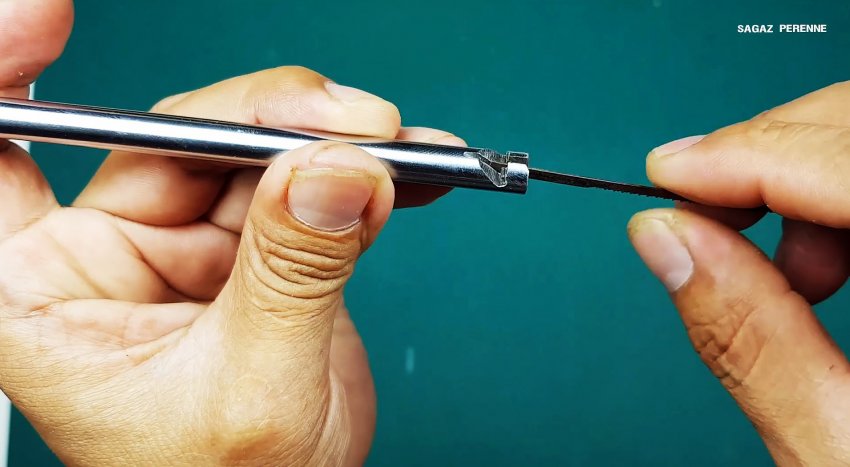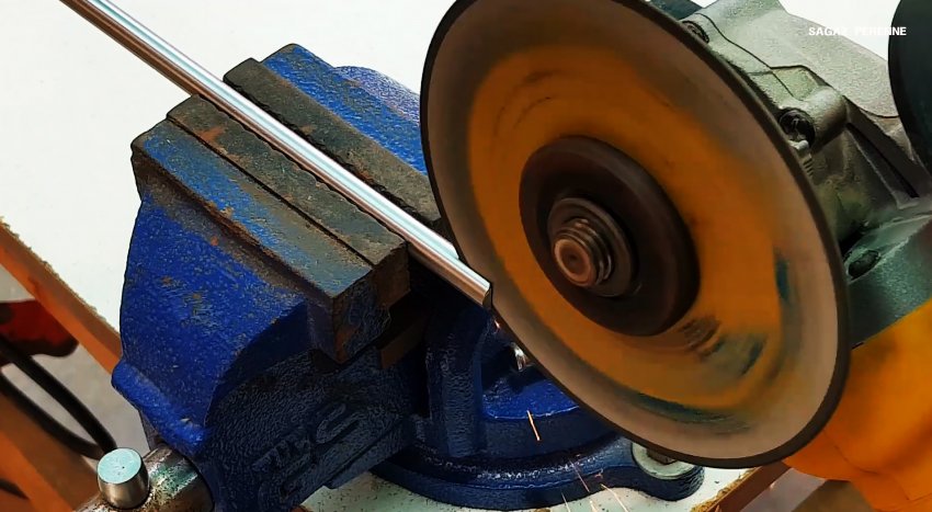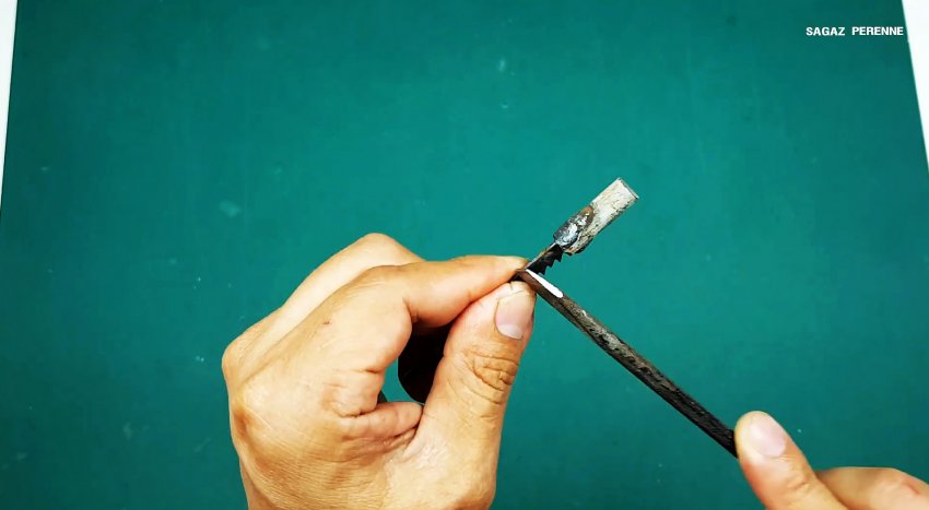 Делаем в нем паз, в который вставляем укороченную пилку и обвариваем.