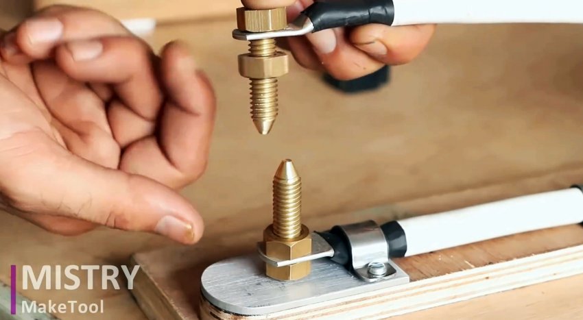 Заостряем концы двух медных стержней, используя диск болгарки.
