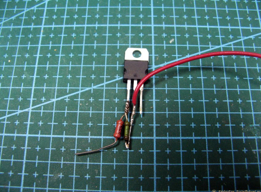 Паяю все навесным монтажом, не забыв об изолировании компонентов. Распаял резисторы на стабилизаторе.