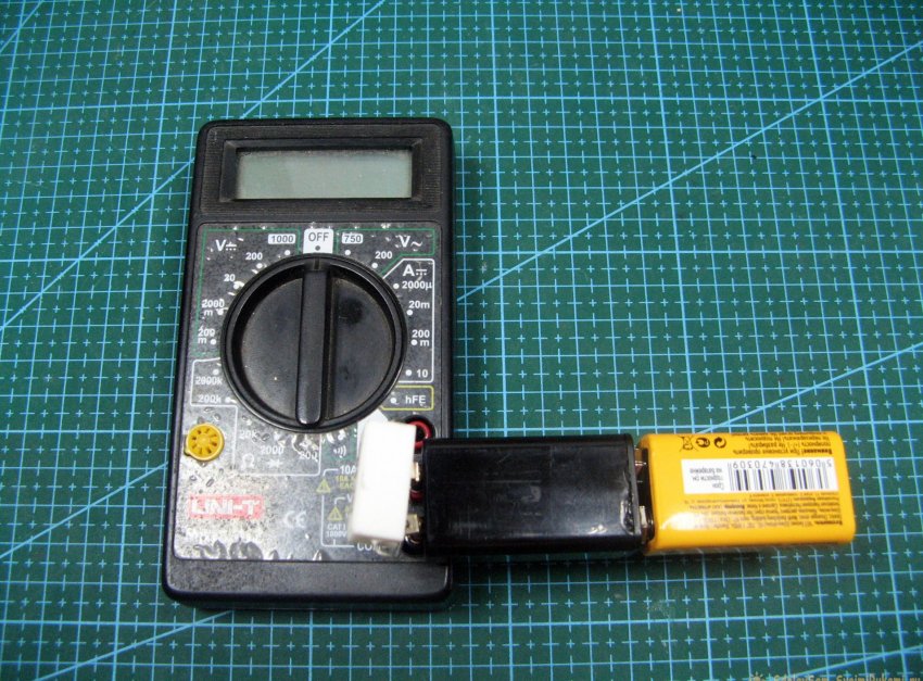 Соединяю все провода и компоненты. Устанавливаю в корпус. Можно подключать батарейку крона, но она быстро разрядится. Все же ее хватит на какое-то количество измерений. Регулировочным резистором устанавливаем ток 0,1 Ампер. Просто установив предел мультиметра в режим тока и накрутив нужный ток. Измерение будем проводить в режиме измерения вольт.