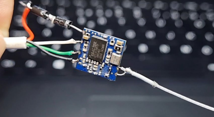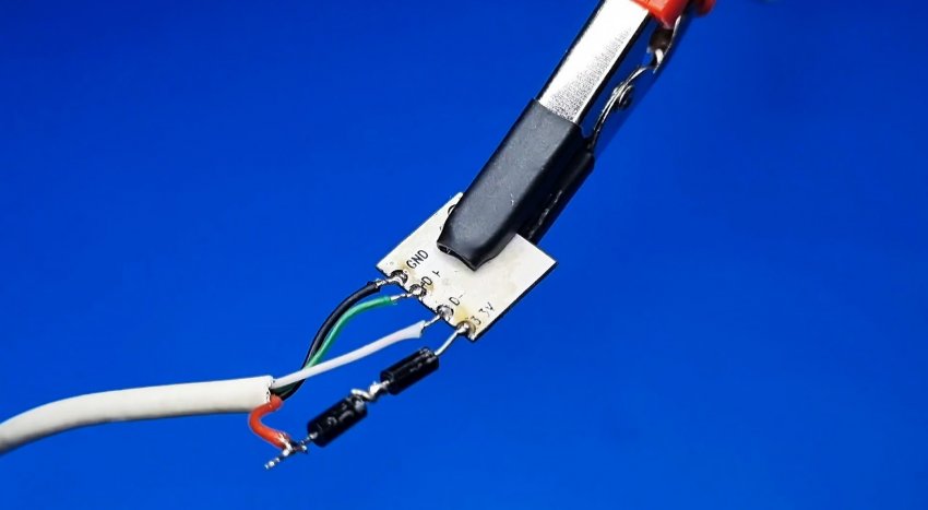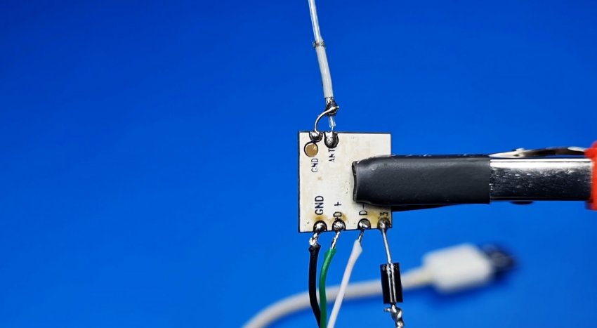Припаиваем контакты от USB к модулю Wi-Fi, кроме плюсового питания.
