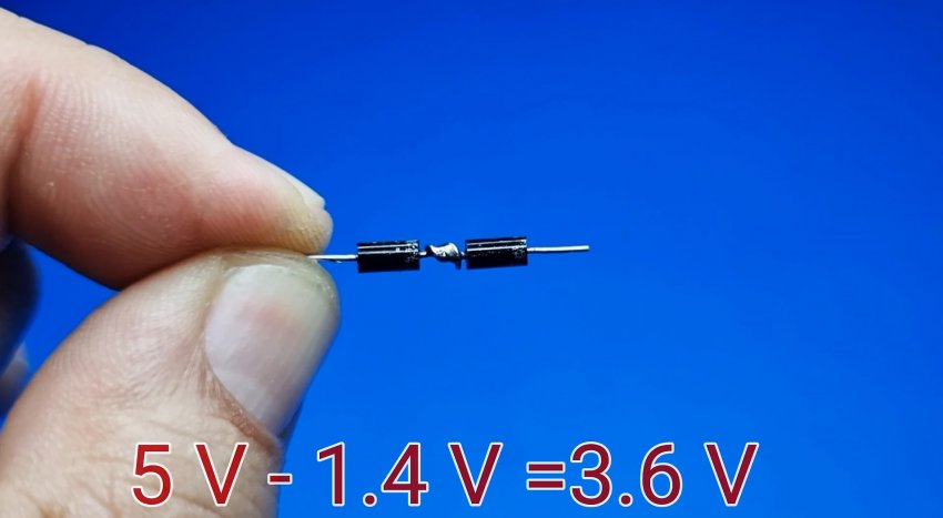 Дело в том, что вся электроника планшета питается от напряжения 3,3 В. Поэтому, подключать его напрямую к ПК нельзя. Нужно понизить напряжение. В этом нам помогут два диода, включенные последовательно.