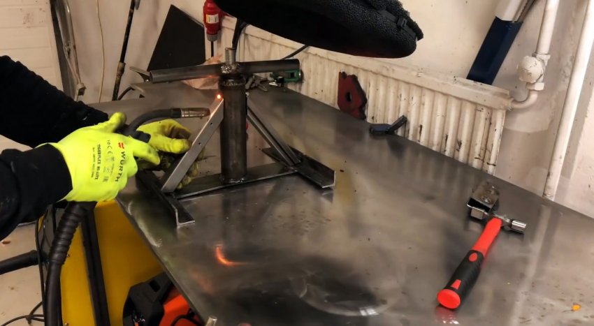 Прихватываем детали, проверяем геометрию и свариваем конструкцию.