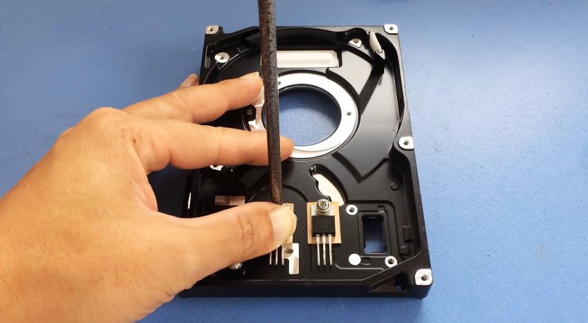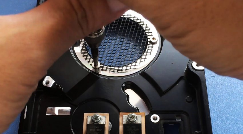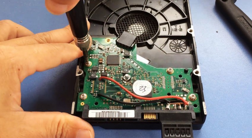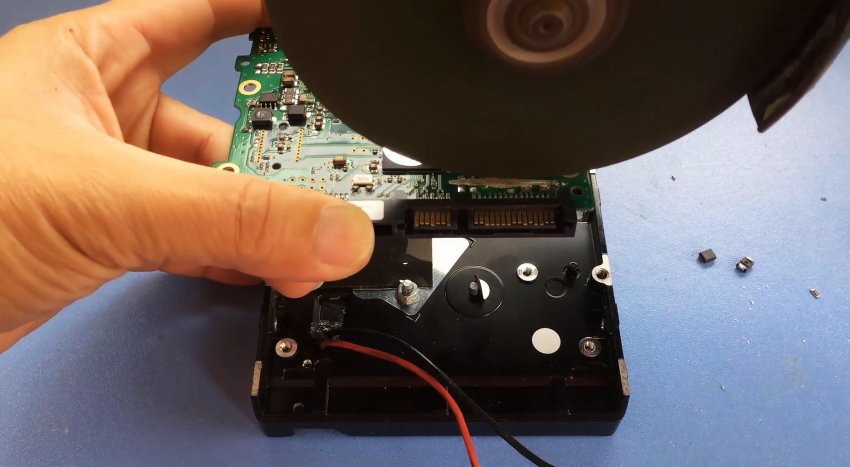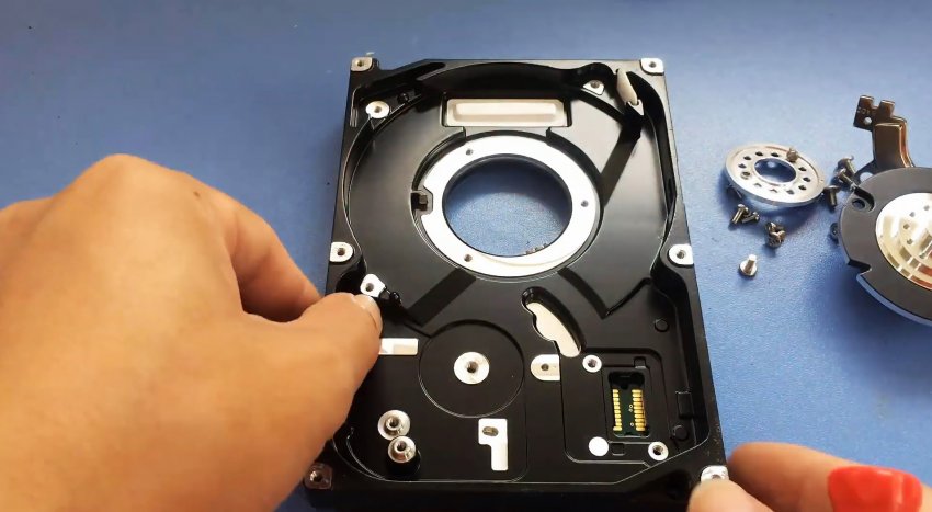 Для этого с HDD снимается верхняя крышка и вынимается вся его начинка. Также откручивается электронная плата.