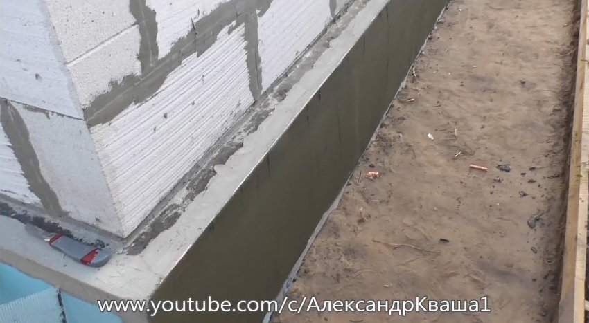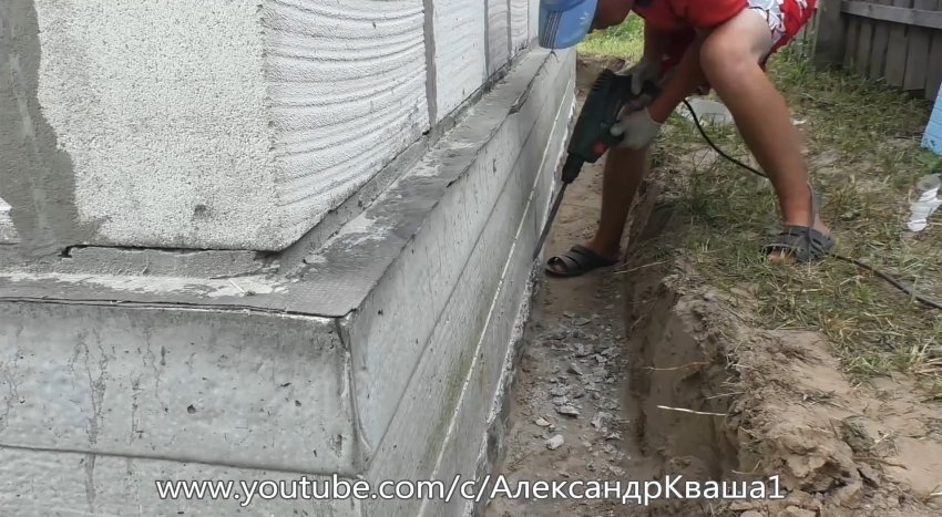 Остатки грунта с фундамента удаляем веником, а неровности на заглубленной части удаляем, например, перфоратором.