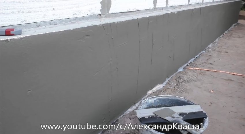 После высыхания клея, теркой удаляем неровности. Заливаем отмостку, а цоколь снова штукатурим, красим или украшаем декоративными элементами.