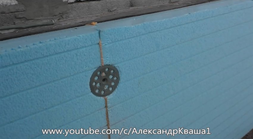 Для надежности крепления утеплителя к фундаменту его можно усилить дюбелями. Однако клей-пена настолько прочно удерживает листы, что дополнительного крепления не требуется.