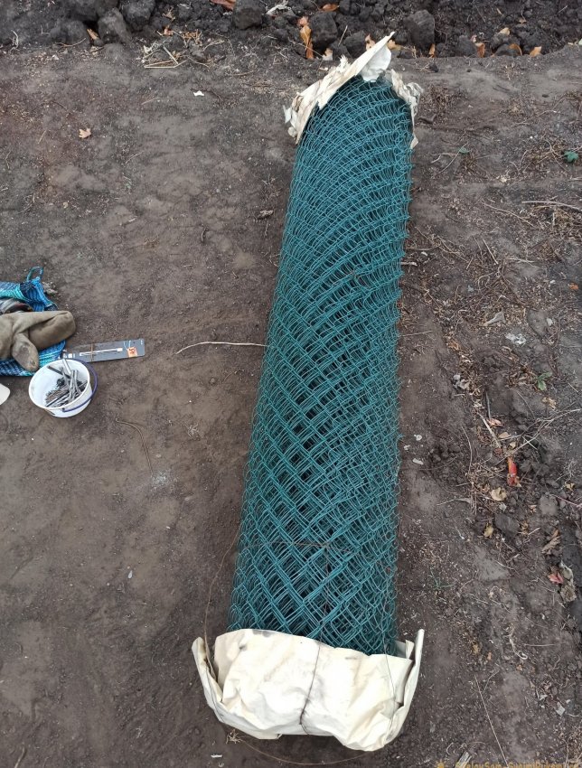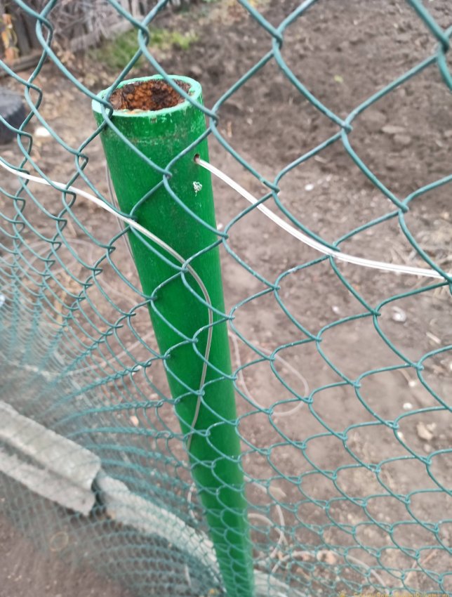 После этого можно разматывать сетку. Кстати, продлить срок службы забора также можно, используя сетку из проволоки в пластиковой оплетке.