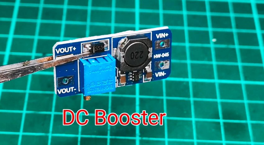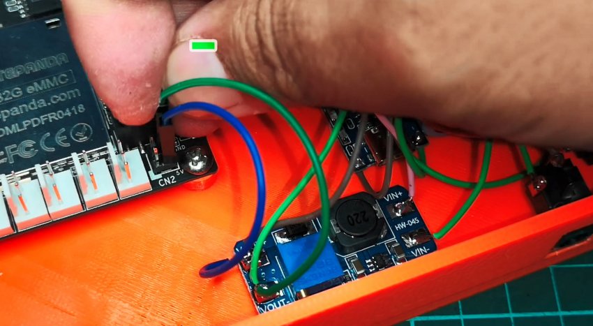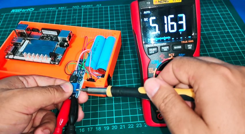 Присваиваем его к ранее сделанным отводам от аккумуляторов, через переключатель. Включаем переключатель, к выходу преобразователя подключаем мультиметр. Вращая потенциометр на плате добиваемся выходного напряжения 5 В.