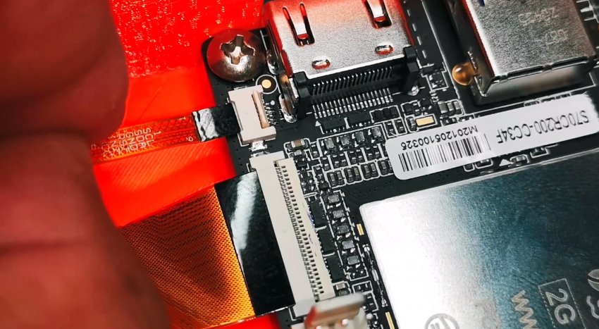 Подключаем широкий шлейф дисплея, затем тонкий сенсорной панели.