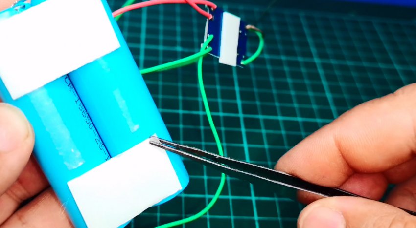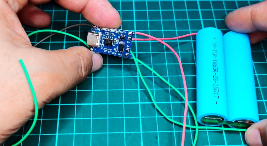 Подключаем их к модулю зарядки и делаем еще два отвода для выходи питания.