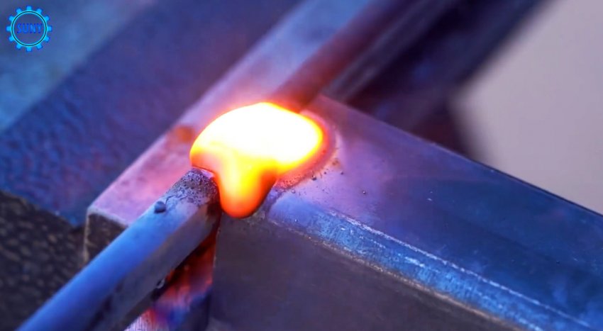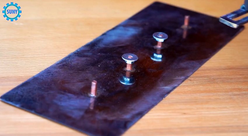 Привариваем трубку дальним от отверстия торцом к плоскости пластины ближе к одному ее концу.