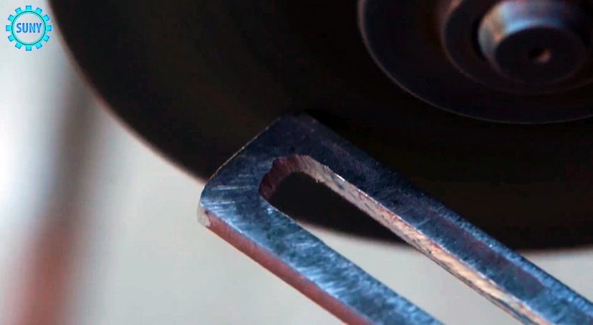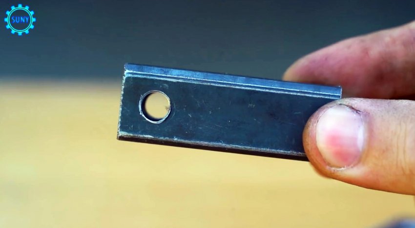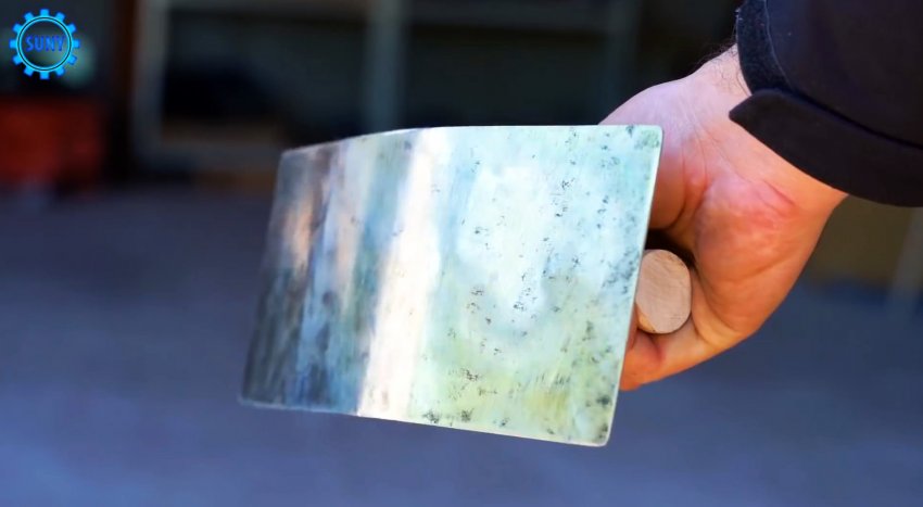 Срезаем с двух сторон стальной пластины квадратные зубья и зачищаем ее до блеска, особенно рабочую поверхность и скругляем углы.