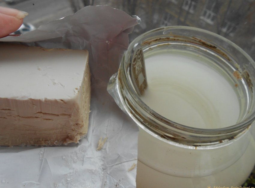 Дайте постоять закваске несколько часов, тщательно перемешайте деревянным шпателем мутную белесую жидкость с приятным дрожжевым запахом.