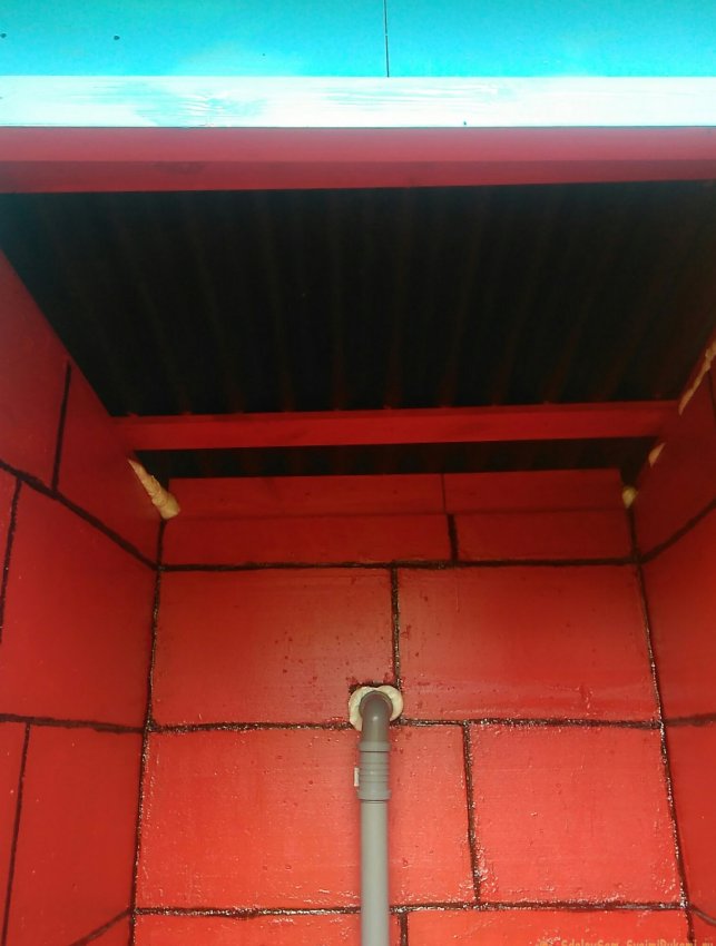 Параллельно я делал подставку под сиденье унитаза, вентиляционную вытяжку, красил всё фасадной краской.