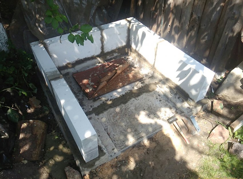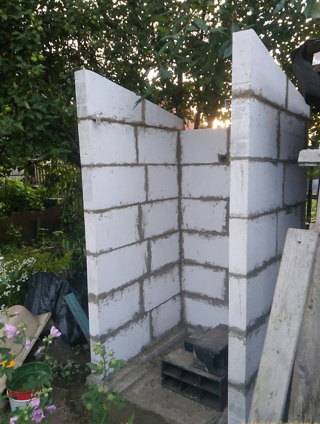 Далее из блоков я выложил такой же П-образный каркас сооружения, предусмотрев обрезку по высоте верхнего яруса блоков (для сооружения скатной крыши).