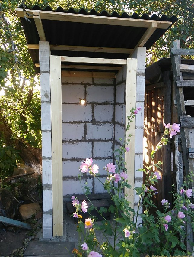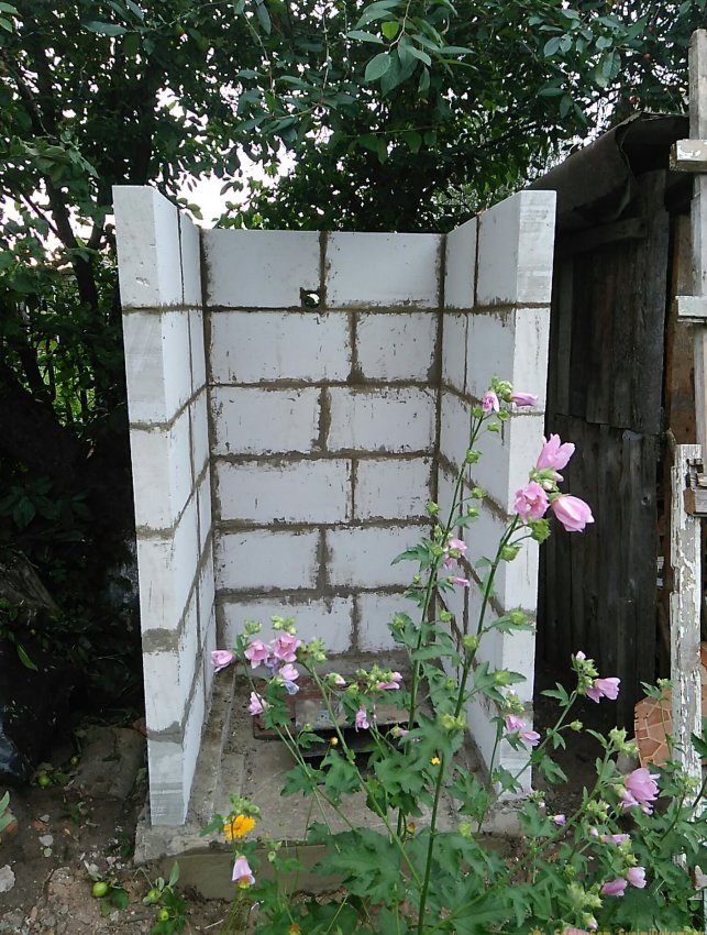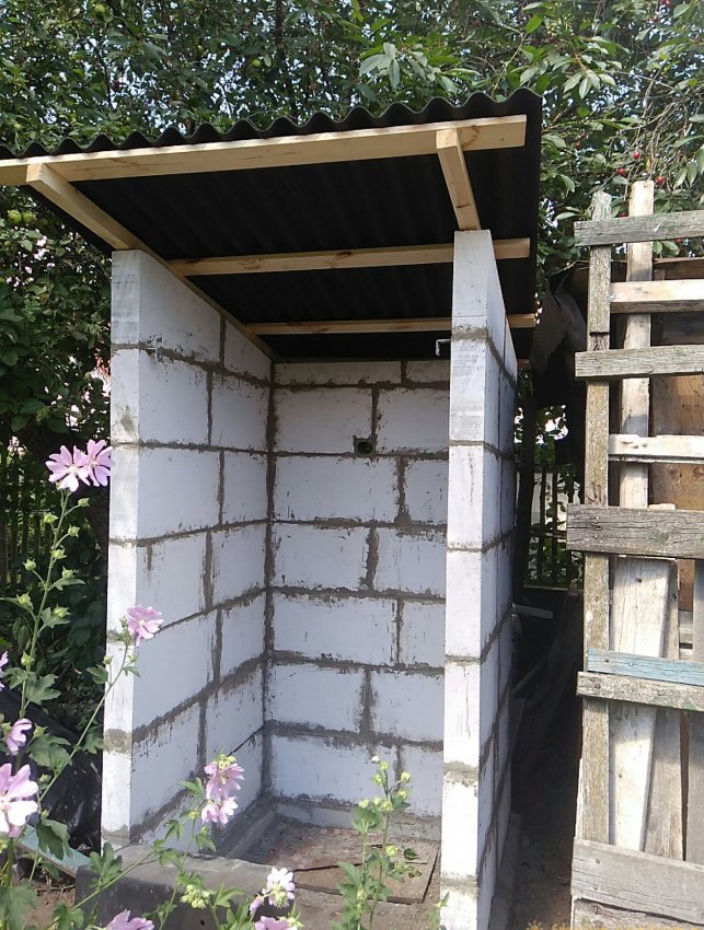 Общая стоимость моего туалета вышла примерно в 1,5-2 раза дешевле, нежели я бы сделал его деревянный аналог (учитывая тот факт, что цены на доски у нас высокие). Можно было бы сэкономить на ондулине, взяв обычный шифер или профнастил. Также следует учесть, что часть строительного материала у меня уже была в наличии: песок (для цементной смеси), трубы для вентиляции, элементы каркаса под сиденье унитаза. Работа заняла в общей сложности несколько недель, потому что приходилось делать всё вечером после своей основной работы. За это время как раз успевал схватываться цемент. Единственное, что я бы рекомендовал людям, кто отважится на такой же эксперимент, это сначала оштукатурить сооружение, а лишь затем красить. Я же так торопился приступить к замене канализации, что опустил этот этап работы. И возможно, позднее к нему еще вернусь.