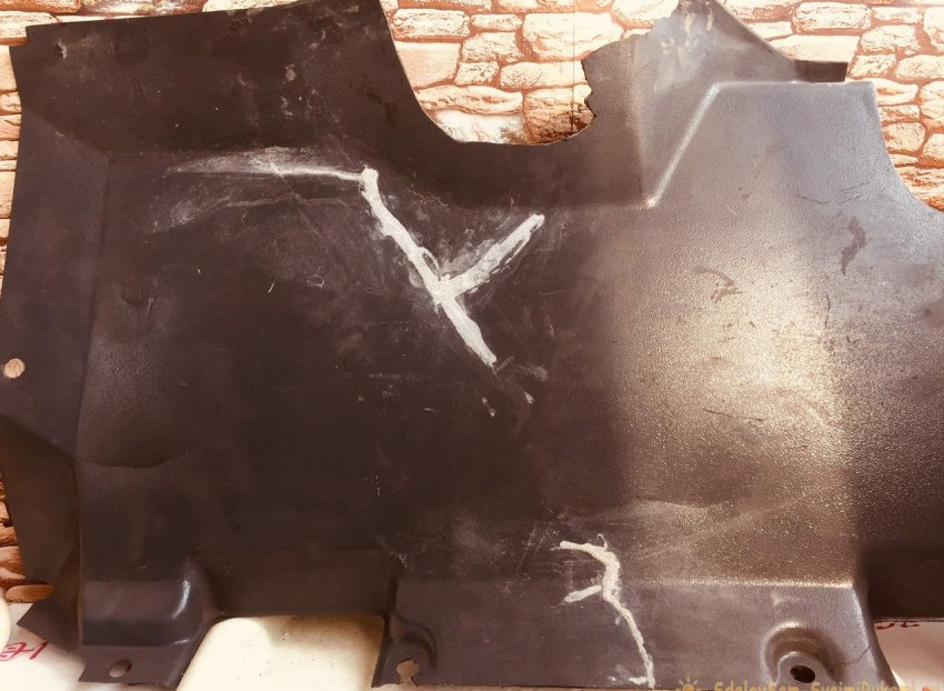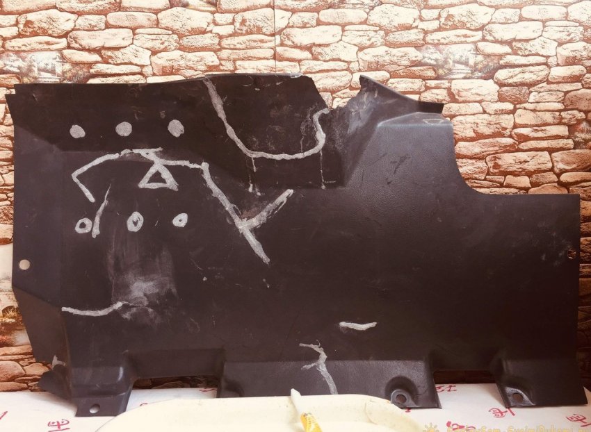 Пластиковая панель снята с той части кабины, где находятся ноги пассажиров. Не знаю, что делали пассажиры предыдущих владельцев авто, но панель в весьма плачевном состоянии. Найти недорогую замену ей пока не удается, так что чиню сам. На фото по белым швам видно о частично проделанной работе по удалению трещин.