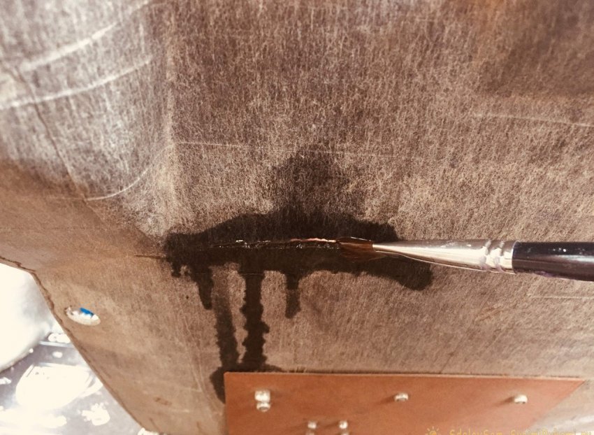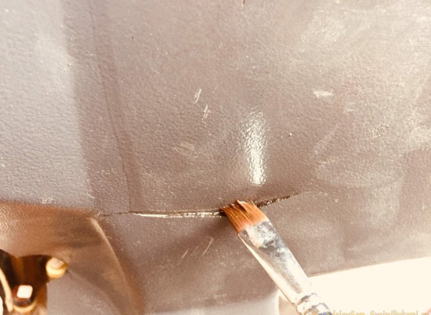 1. Трещину обезжирил спиртом с обеих сторон ремонтируемой детали. Для этого удобно использовать художественную кисть (позаимствовал у ребенка).