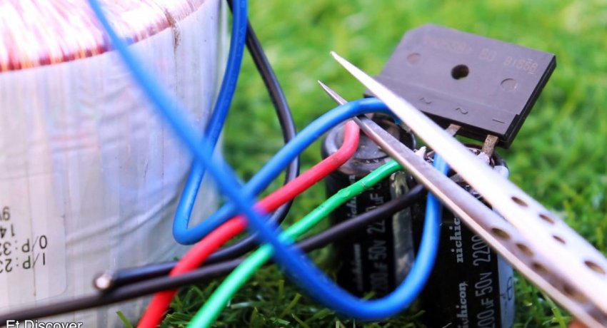 Паяем выпрямитель и подключаем к трансформатору.