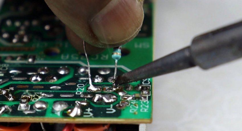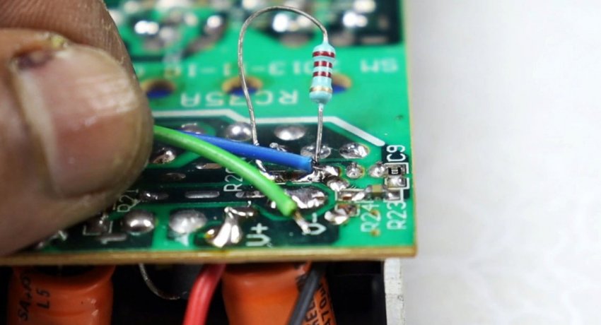 Припаиваем резистор 2,2 кОм, согласно схемы доработки.