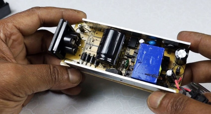 Вскрываем корпус блока при помощи отвертки. Конечно не все корпуса имеют защелки, если он склеен, то как его разобрать читайте тут - https://sdelaysam-svoimirukami.ru/5130-kak-razobrat-korpus-bloka-pitanija-ot-noutbuka.html