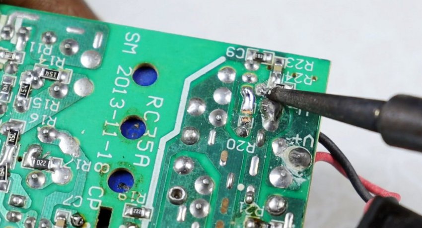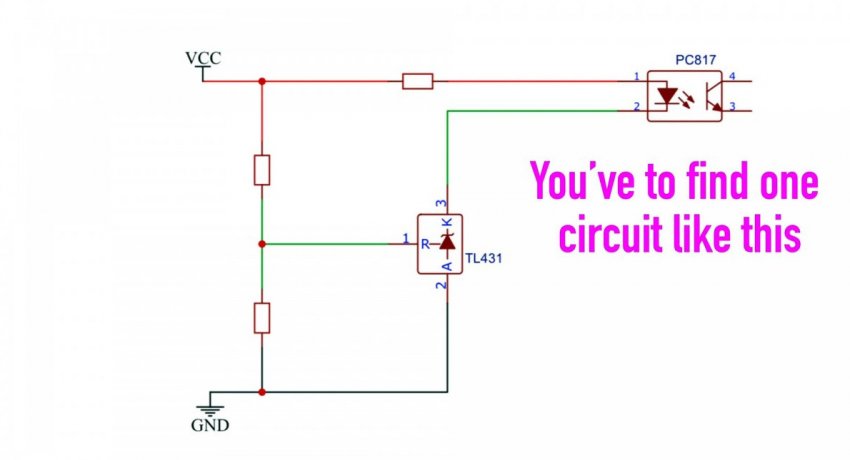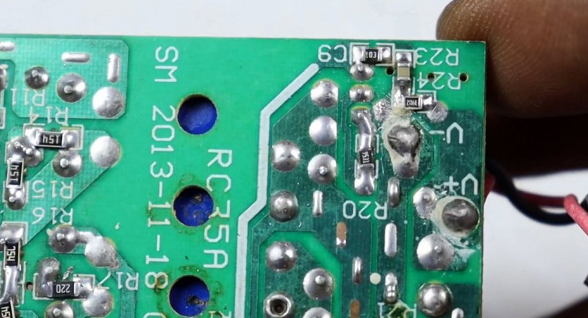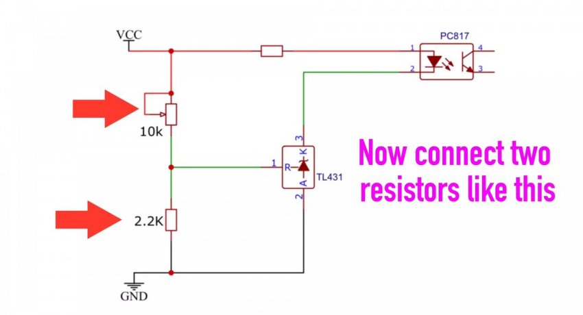 Один резистор в цепи оптрона ограничивающий, другие два делители на выходе микросхемы. Сзади платы эти резисторы отчетливо видны.
