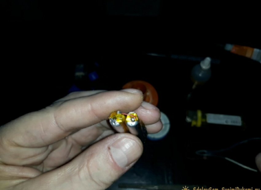 Изготовители этих устройств, очень недальновидно расходуют литий-ионные аккумуляторы, помещая их в одноразовые гаджеты. Кроме того, эти устройства, в большинстве своём, отправляются после использования на свалку, отравляя тем самым почву. Так не лучше ли дать им вторую «жизнь»? Итак, если Вы сами не увлекаетесь столь сомнительным удовольствием, как курить эти штуки, то возможно, среди Ваших знакомых есть, у кого спросить такие ненужные устройства. Разбираем два одинаковых испарителя и отсекаем кусачками провода от аккумулятора.