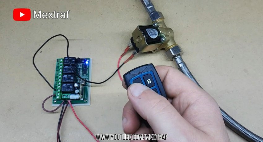 Радиомодуль фиксирует состояние и напряжение держится на клапане до тех пор, пока повторно не будет нажата кнопка пульта ДУ. Естественно, пока вода идет через клапан на нем присутствует напряжение 12 В.
