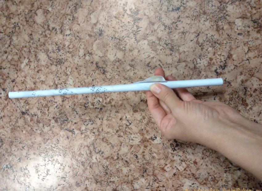14. Сделать посох из листа бумаги. Накрутить лист бумаги на спицу, вынуть спицу, приклеить кончик листа клеем. Обклеить посох фольгой.