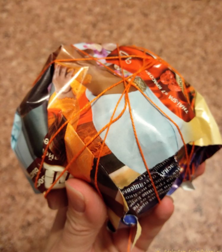 1. Из страниц старого журнала сделать заготовку для головы – скомкать бумагу в круглый шар. Такая голова получается легкой. Плюс – можно сделать любой размер.