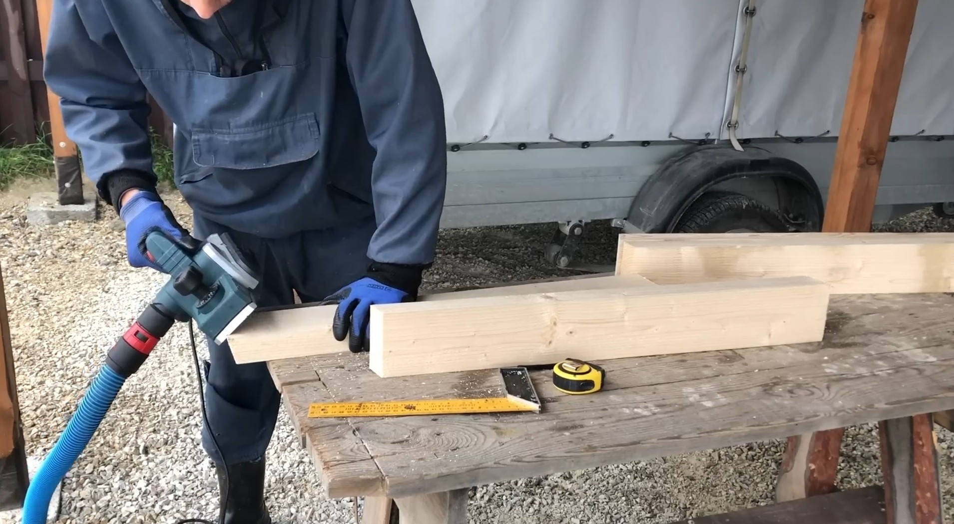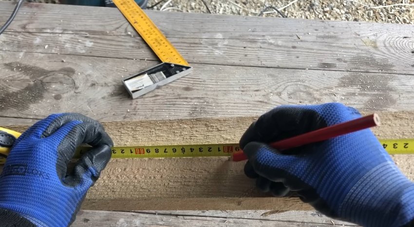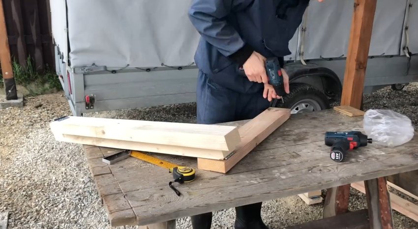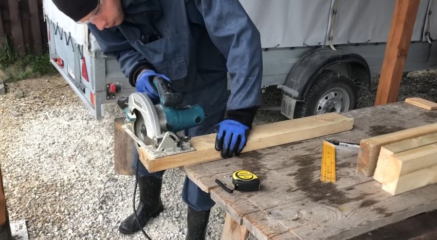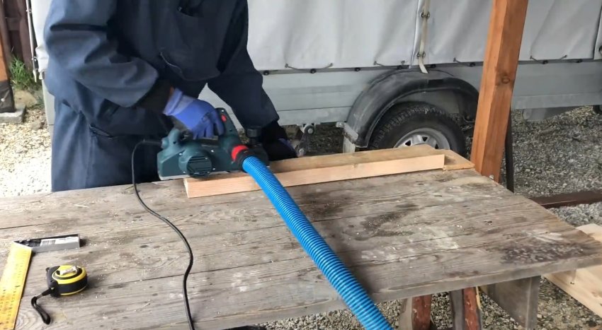 Теперь нужно сделать поперечину. Для этого взял доску 40 на 100 мм, отмерил отрезок 70 см, отрезал и обработал рубанком.