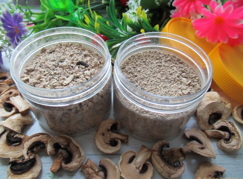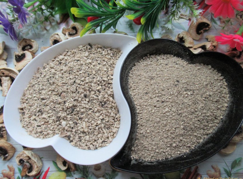 Сегодня мы предлагаем самостоятельно сделать грибной порошок из шампиньонов. Использовать такой продукт можно в качестве ароматной приправы при приготовлении соусов и салатов, первых и вторых блюд. А если дополнить его солью и несколькими пряными добавками (орегано и зеленью укропа, пажитником и кориандром, молотой паприкой и душистым перцем, сушеным чесноком, тимьяном и гвоздикой), то получится бесподобная заправка, пригодная и для закусок, и для различных горячих блюд.
