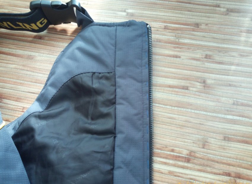 В рассматриваемом изделии молния вшита по центру переда, между верхом и подкладом. Причём, с левой стороны молнии (если смотреть на изделие спереди) под молнию вшита ещё и планка. Там же, практически вплотную с молнией, на деталь переда настрочены липучки. Они помешают работе, т.к. шов их притачивания держит припуски застёжки и молнии. Справа тоже есть планка. Она настрочена на деталь переда на небольшом расстоянии от молнии. Ремонту она не помешает, т.к. шов её настрачивания на деталь переда припуск молнии не захватывает.