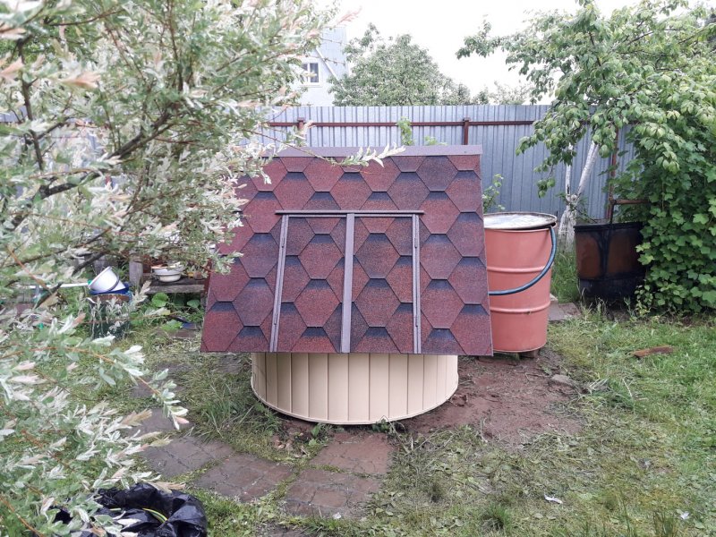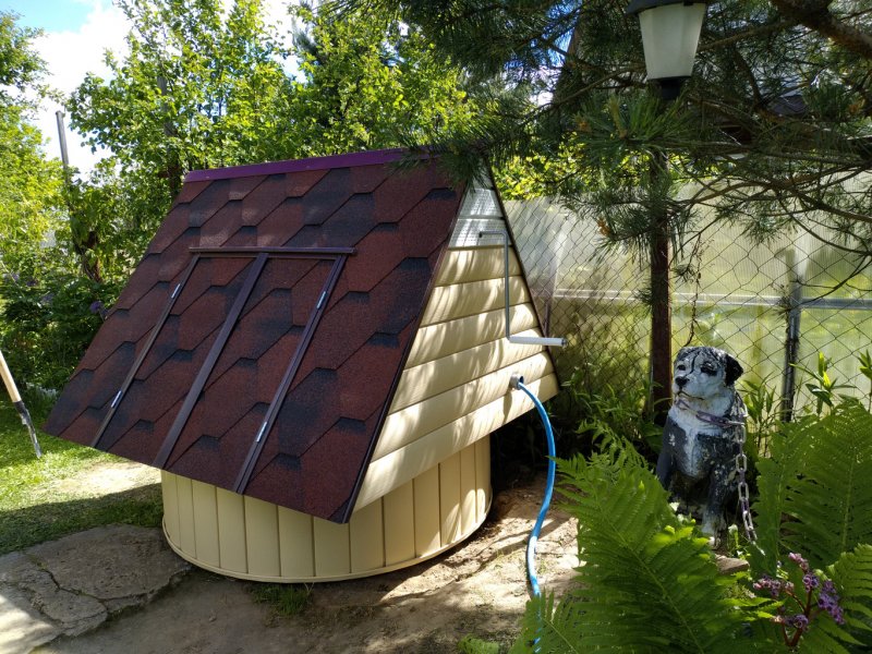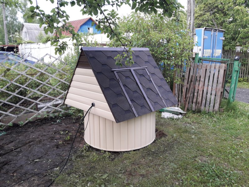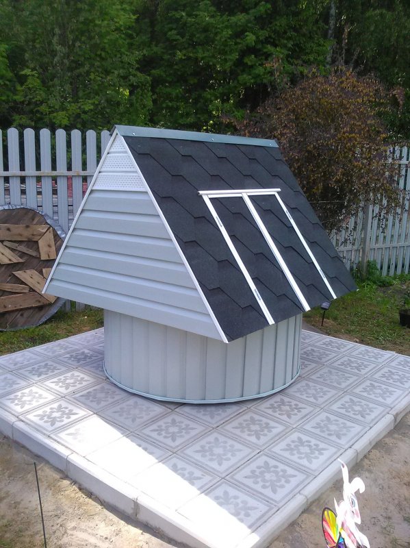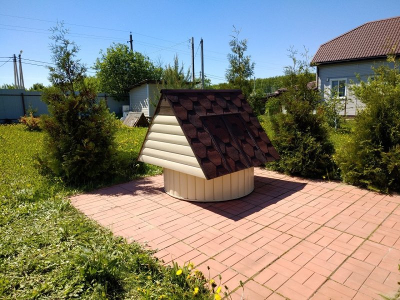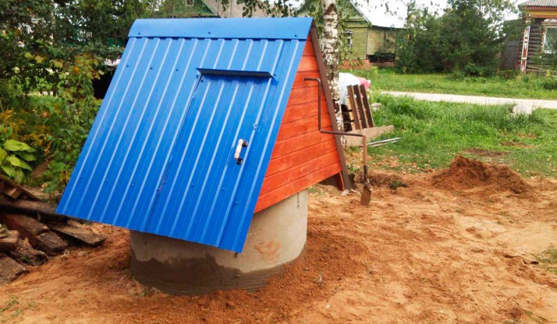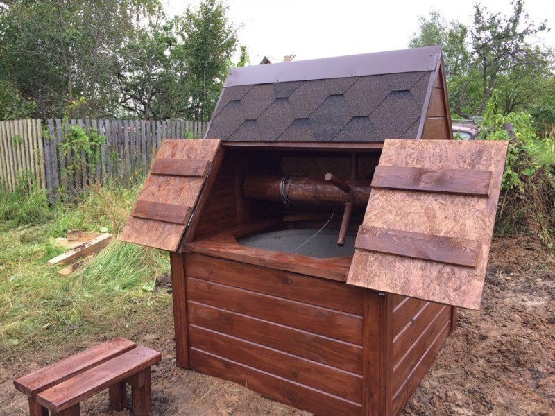 - закрытые – строение выполняется в виде полноценного домика, снабженного дверцей в крыше. При необходимости сооружение можно утеплить пенополистиролом, что позволит предотвратить замерзание воды в колодце в зимнее время;