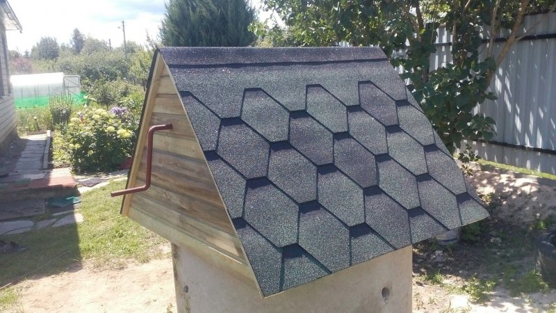 Крыша домиков для колодцев могут иметь самую разную форму. Они могут представлять собой плоский щит, укладывающийся поверх колодезного кольца или напоминать крышу сруба. Как правило, используются односкатные, двускатные конструкции или повторяющие форму зонта. Кровля может быть пологой или иметь острый угол наклона. Дверцы располагаются на крыше с одной или с каждой из сторон. Они могут иметь одну или две створки, представлять собой сплошные или раздвижные панели.