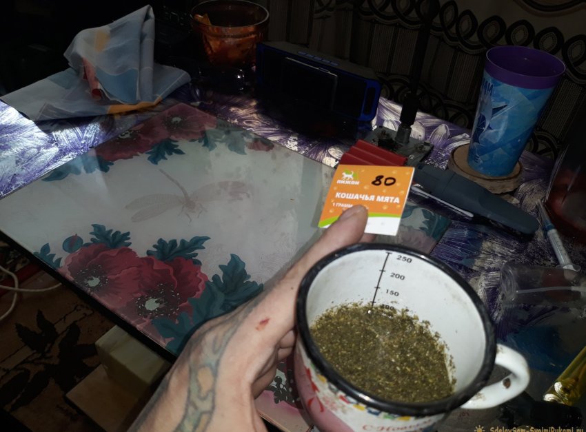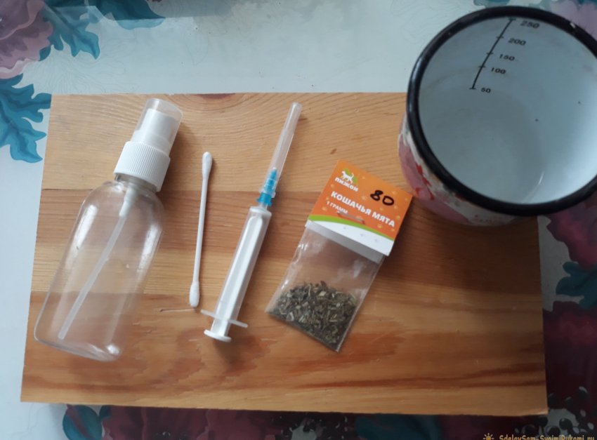 Аромат, настойка кошачьей мяты имеет сильный и ярко выраженный, но весьма не устойчивый. То есть, он недолго сохраняется, быстро выветривается. Посему необходимо обновлять аромат каждые 2-3 дня, по 5-6 нажатий на клапан распылителя. И так, покуда усатый питомец не привыкнет чесать свои когти об это изделие. Продаётся эта кошачья радость в любом зоомагазине. Стоит не дорого. На приучение уйдёт не больше недели. А то и с первого дня получится. Моя Полосатая Зверина начала суетиться и мешать работать сразу, как только учуяла запах кошачьей мяты. Пришлось даже запереть её на время. Осталось дело за малым – просверлить отверстия под саморезы, и прикрепить когтеточку к стене, в том месте, где она не будет мешать.