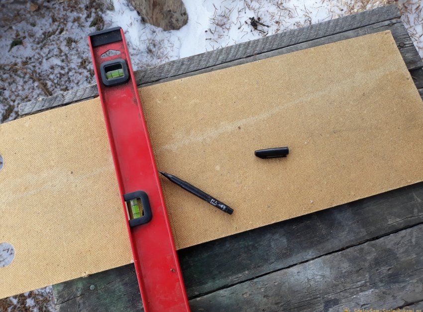 В первую очередь следует изготовить основу. Тут нам понадобится кусок ДВП или фанеры. Отмеряем площадь 26?44 см, и отпиливаем.