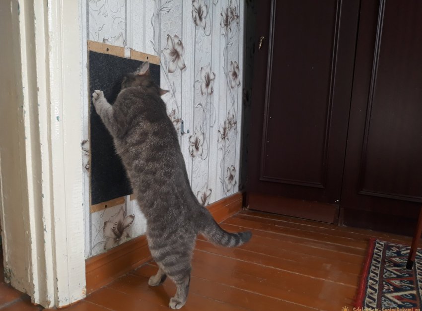 Таким не хитрым образом мы можем отучить своевольную животину портить обои и мебель.