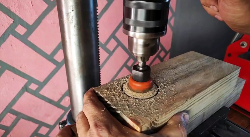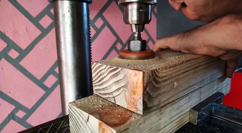 Собираем приспособление, фиксируем брусок в патроне и повторяем обработку.