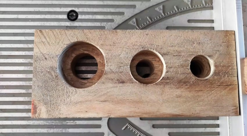 В нем соответствующими корончатыми сверлами делаем прорези, равные толщине плашек.