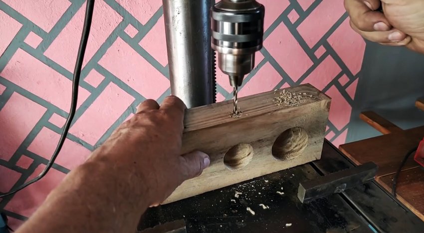Для их фиксации высверливаем в бруске боковые отверстия.