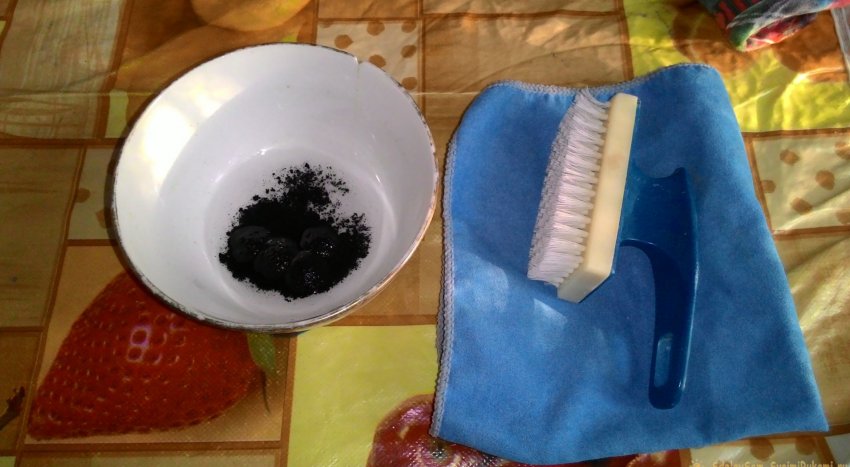 5. Наношу щеткой на чайник активированный уголь.